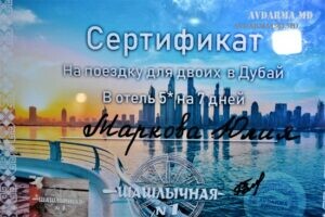 Администрация ресторанного комплекса «AVDARMA» довольно часто проводит для своих посетителей конкурсы и розыгрыши с ценными призами. Ушедший год не стал исключением. Весной 2019 года в «Шашлычной№1» рандомным способом определили счастливого обладателя главного приза -путевки на двоих для отдыха в Дубае. Сертификат на получение путевки в Дубай, включал в себя перелет туда и обратно, а также отдых в 5-ти звездочном отеле, на первой береговой линии. Семейная пара из Чадыр-Лунги провела неделю на побережье Персидского залива в Объединенных Арабских Эмиратах. Об этом мы писали в этом материале.