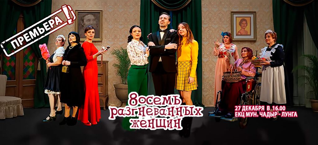 Гагаузский Национальный театр им. Д. Танасоглу приглашает зрителей на премьеру русскоязычной версии яркого и динамичного спектакля «Восемь разгневанных женщин», которая состоится 27 декабря.