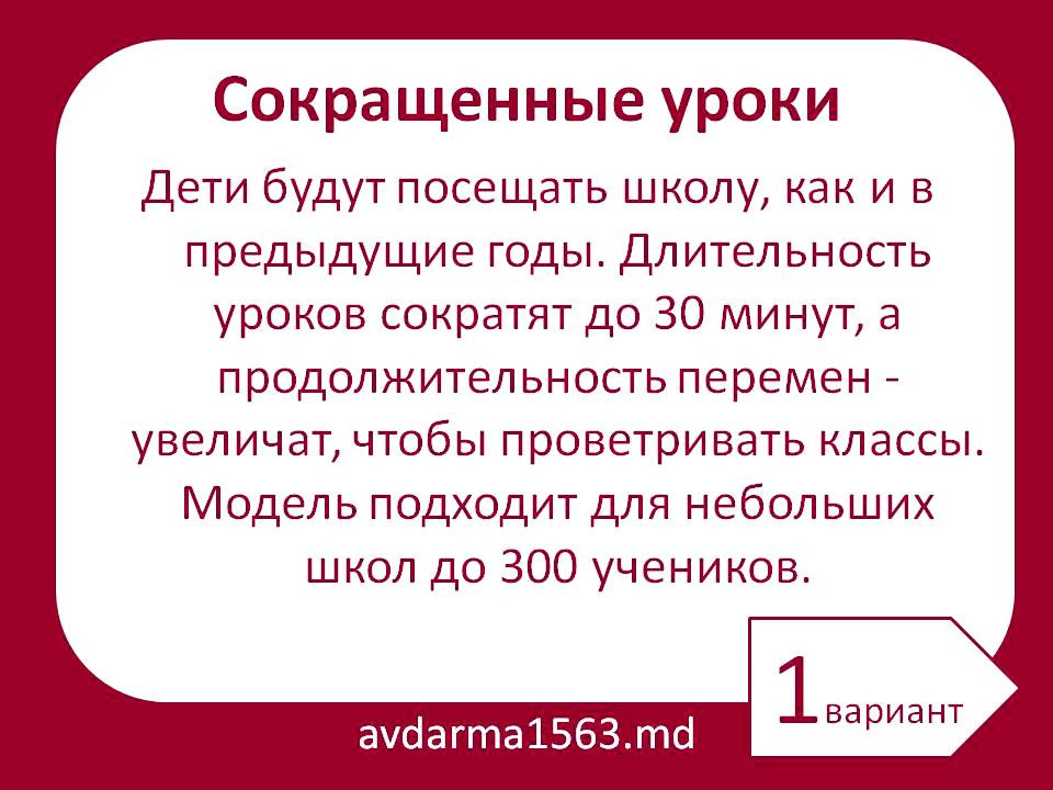Директора школ обсудят оптимальные варианты с педагогами, родителями и учениками. Решение о наиболее подходящей модели работы учебных заведений будут приниматься местными властями в зависимости от специфики населенного пункта и реальных возможностей.