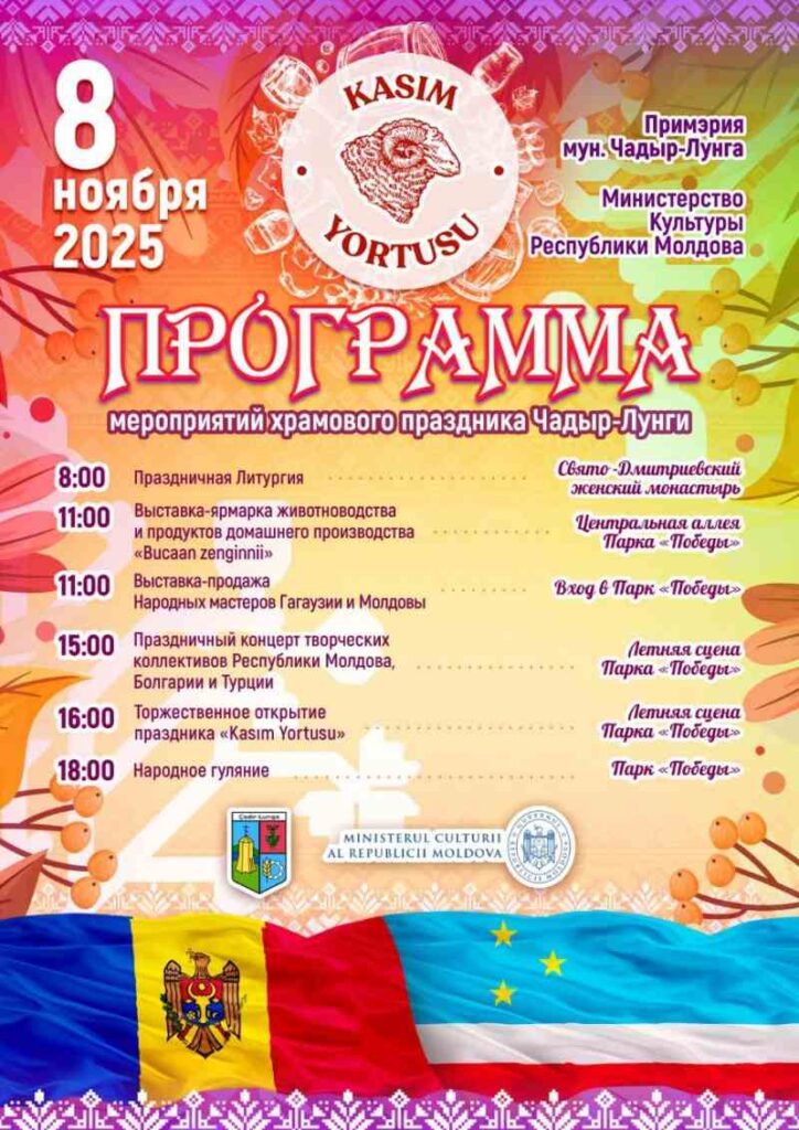 8 ноября в Чадыр-Лунге пройдут мероприятия, посвящённые гагаузскому народному празднику Касым, который традиционно совпадает с храмовым днём города. Касым — один из самых популярных праздников у гагаузов. Он символизирует завершение летнего сезона и окончание сельскохозяйственных работ. Праздник приурочен к православному дню Святого Дмитрия.