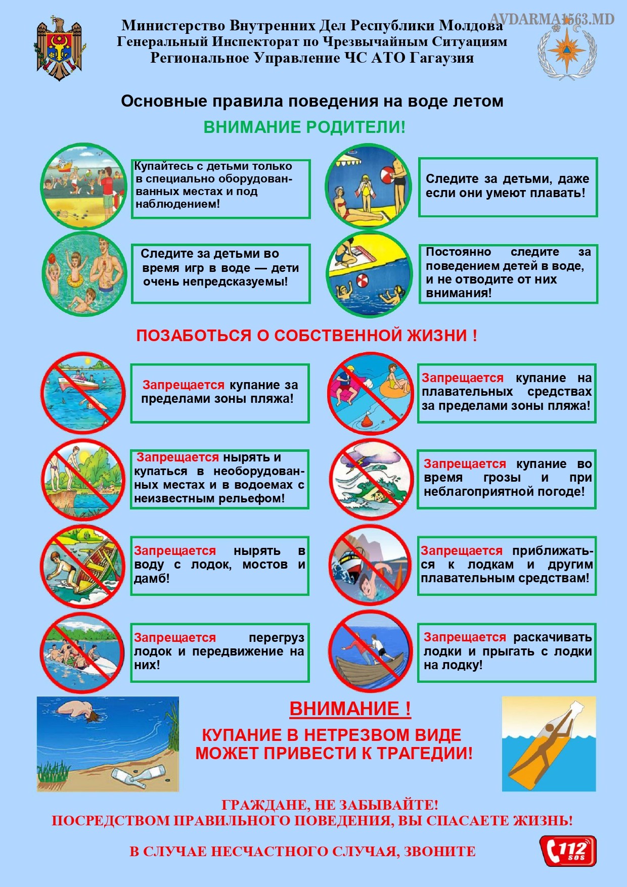 УЧС АТО Гагаузии предупреждает о необходимости соблюдения всех мер безопасности и напоминает о том, что независимо от вида водоёма, будь то море, река, озеро или пруд каждый человек должен знать и неукоснительно соблюдать основные правила поведения на воде.